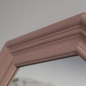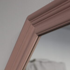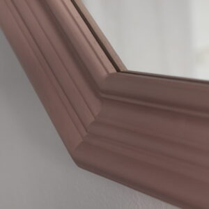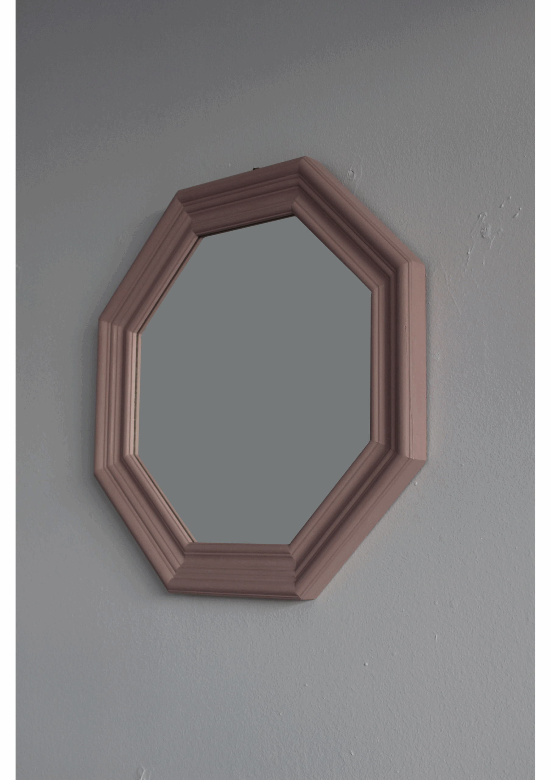 Miroir hexagonale avec cadre en bois décapé et peint dans un coloris « Antique Rose ».