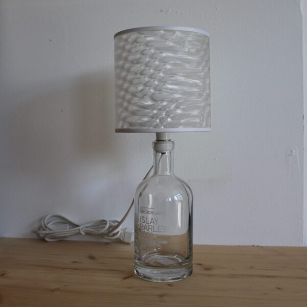 Lampe réalisée à partir d’une bouteille recyclée, câblage électrique et abat-jour neufs
